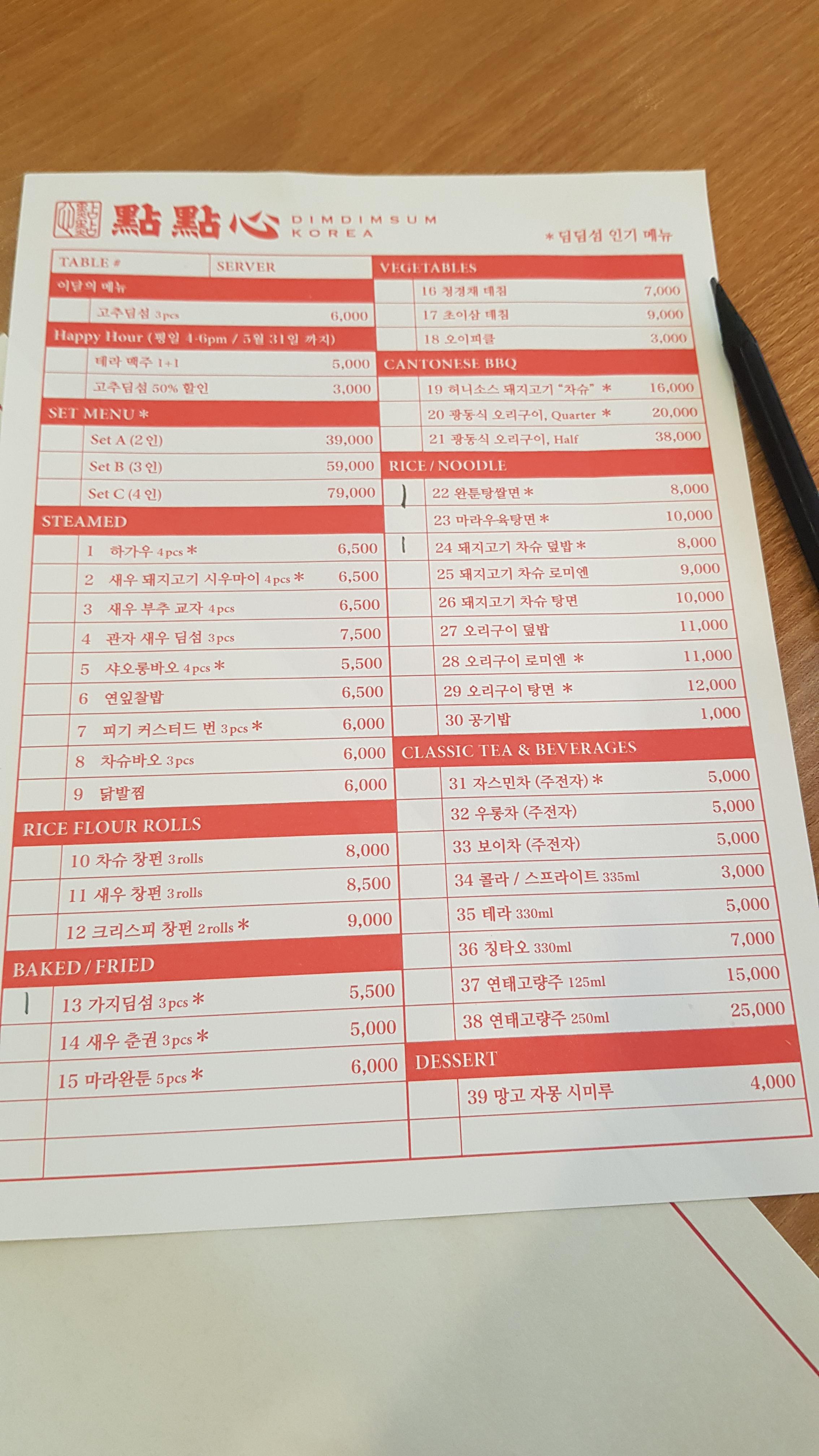 필자가 주문한 메뉴는 가지딤섬, 완툰탕쌀면, 돼지고기 차슈 덮밥 3가지 이다. 먹어보고 추가주문을 할 생각이다. 메뉴옆에 별이 있는건 딤딤섬 인기메뉴인데 별달린 인기메뉴가 많아서 그중에서도 고르는것이 고민된다.