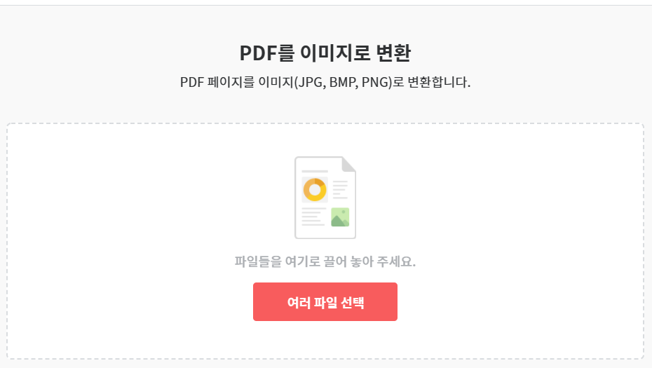 변환할 PDF 파일을 드래그하거나 불러온 후 오른쪽 아래의 'PDF를 이미지로 변환'을 클릭해준다.