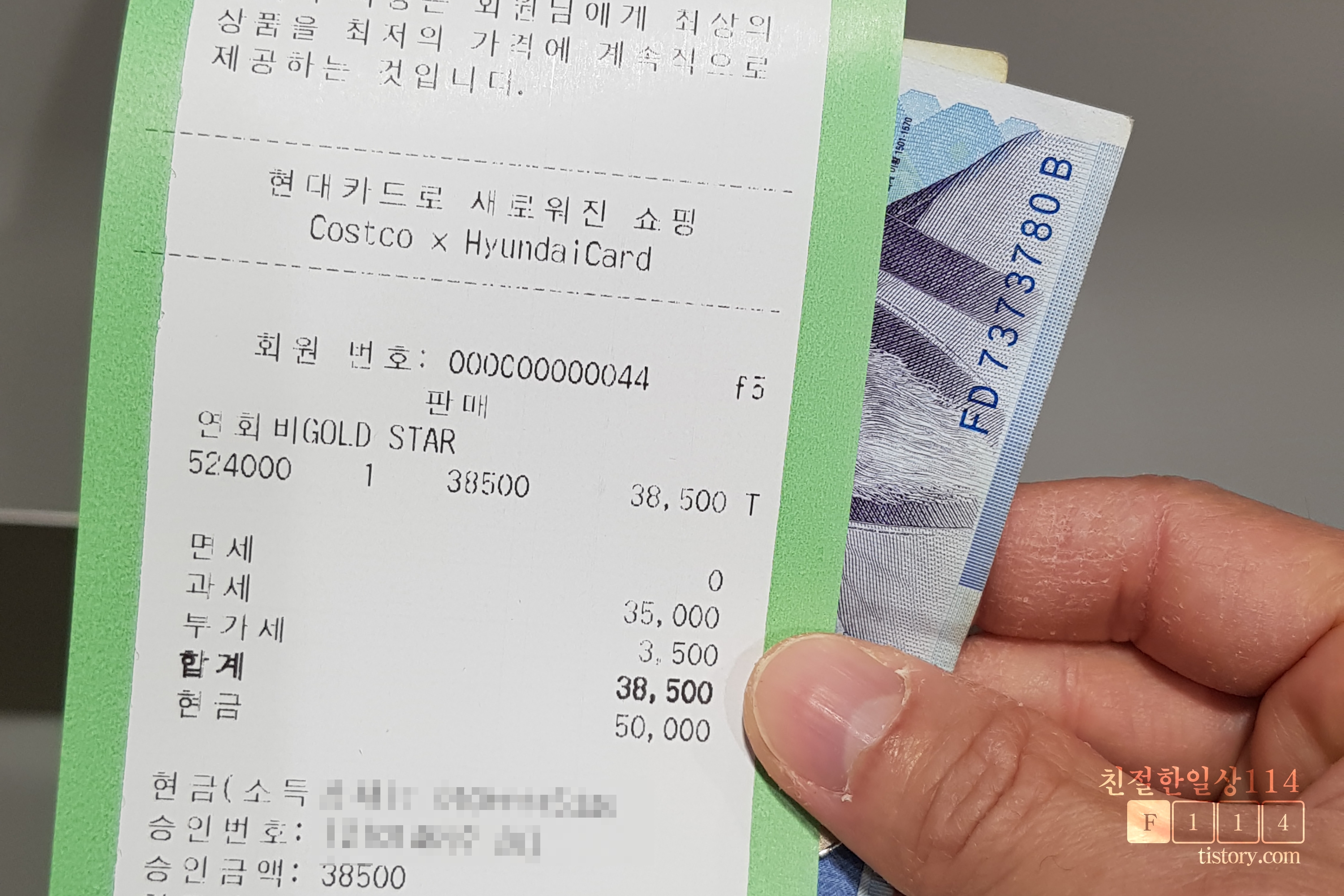 미리 작성해둔 멤버십 가입신청서를 내고서 연회비를 현금으로 지불한다. 멤버십 연회비도 현금 또는 현대카드로만 가능하다. 골드스타 멤버십 연회비는 38,500원으로 5만원을 내고 11,500원 거스름돈을 받는다.
