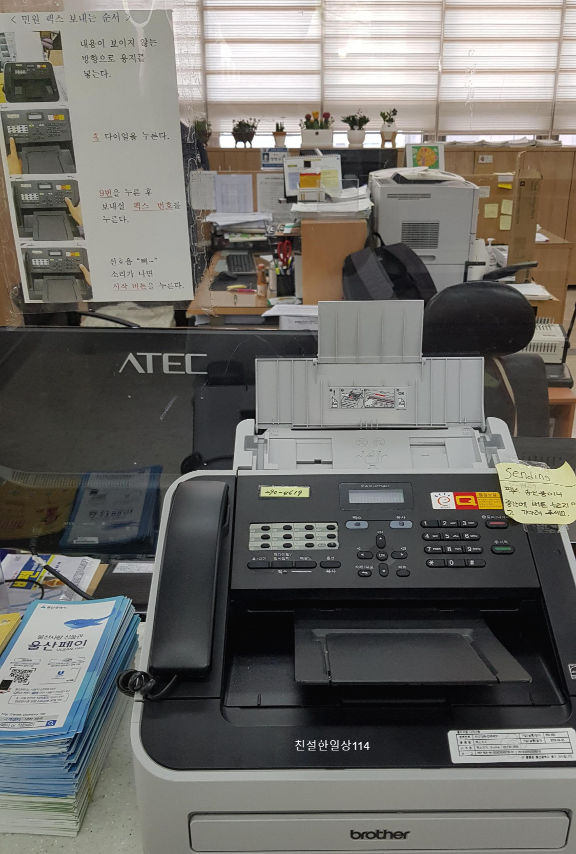 행정복지센터에 들리면 안쪽으로 팩스가 보인다. 팩스는 아무나 사용할 수 있도록 바깥쪽으로 놓여져 있으며 사용방법이 왼쪽에 붙어 있었다. 설명에 쓰여있는 대로 해보고 안되어서 직원에서 물어보고나서 팩스를 발송할 수 있었다.