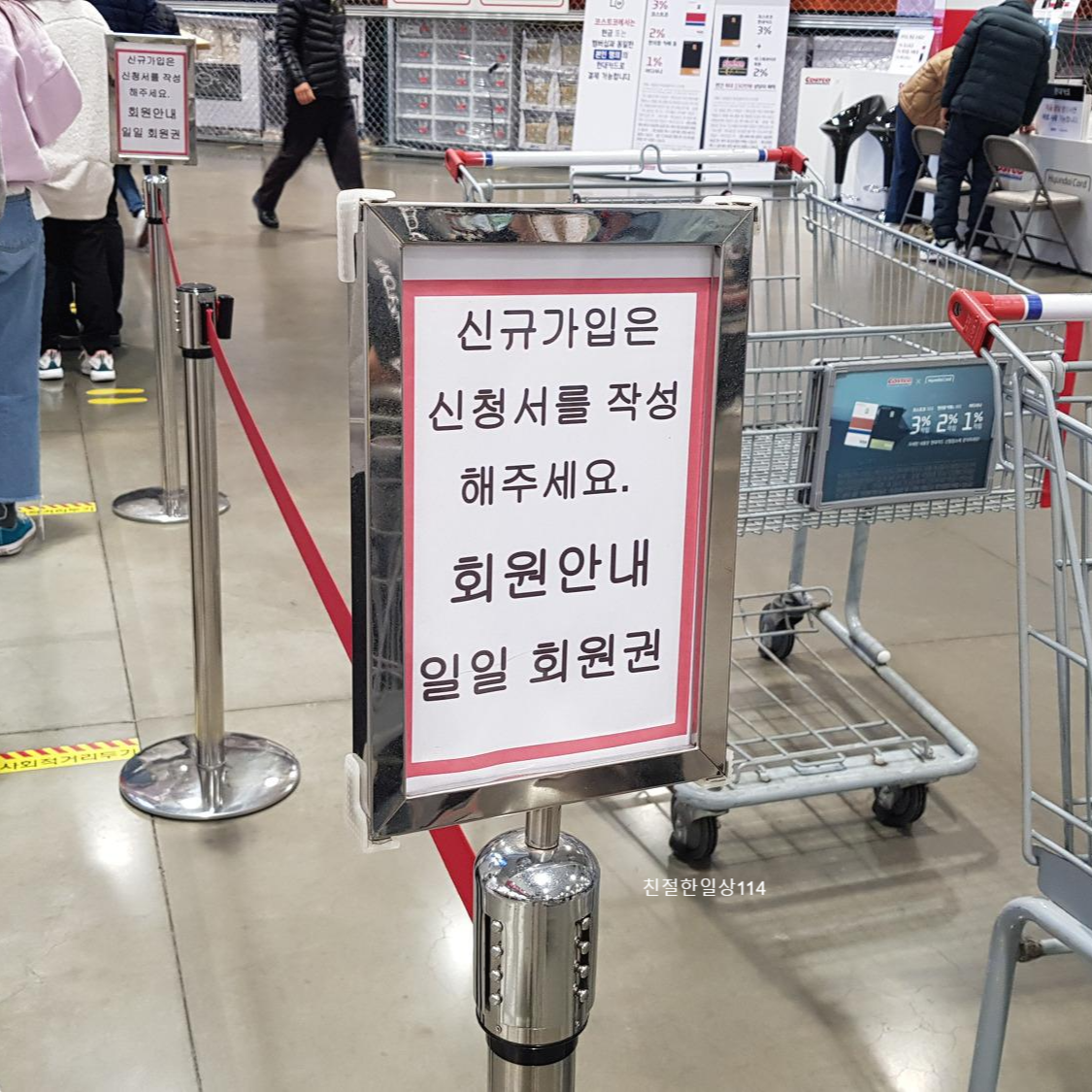 주차장 가까이 있는 코스트코 직원에게 회원카드를 놓고 왔다 설명하니 당일권을 발급받으면 된다 알려주었으며 신규회원 가입하는 곳으로 가라고 안내해 준다.