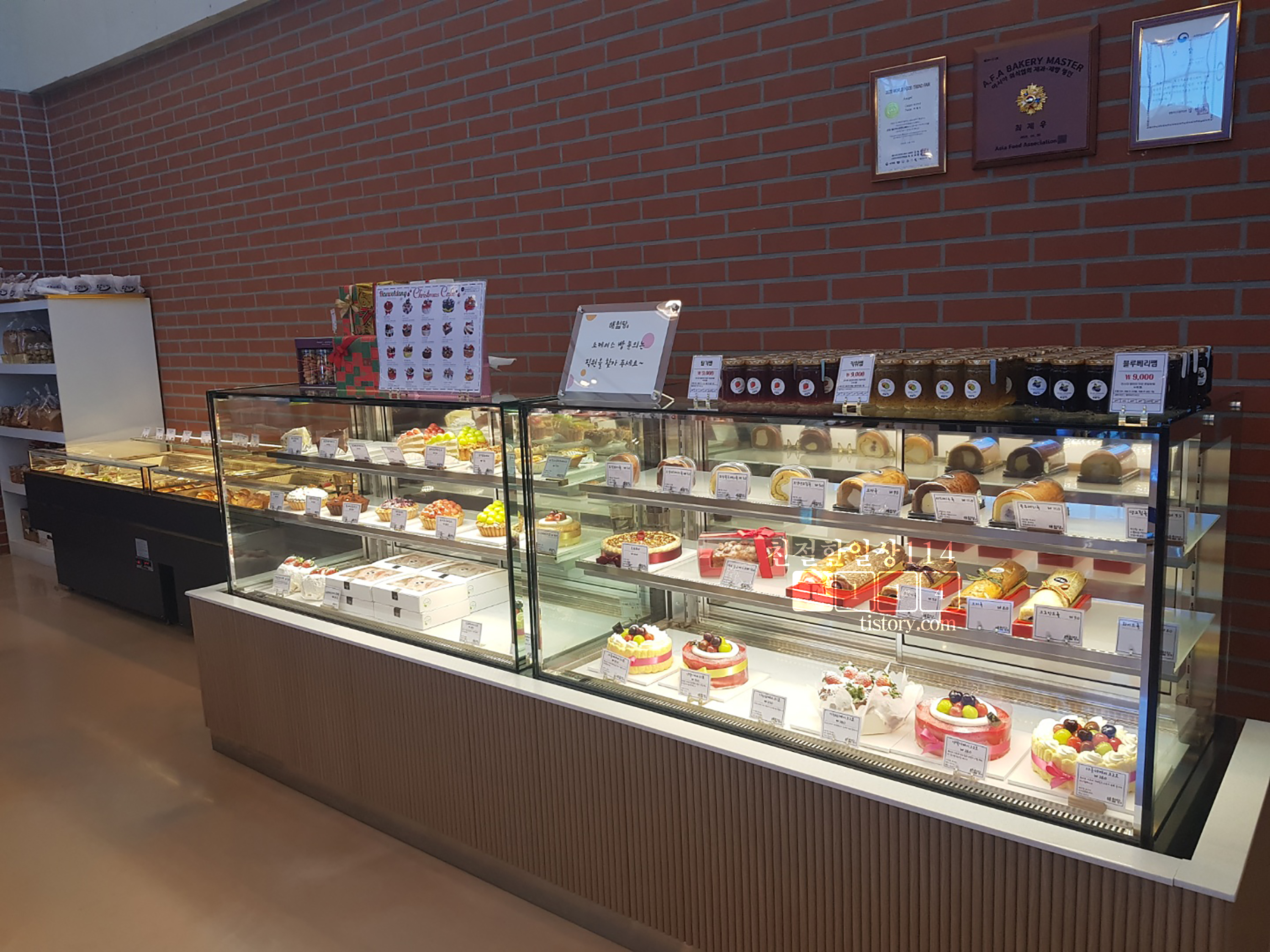 건물 가장 안쪽에는 쇼케이스에 샌드위치류와 케이크가 진열되어있다. 바게트에 찍어먹을 생크림을 사려고 했었는데 해월당에서는 생크림은 팔고있지 않다.