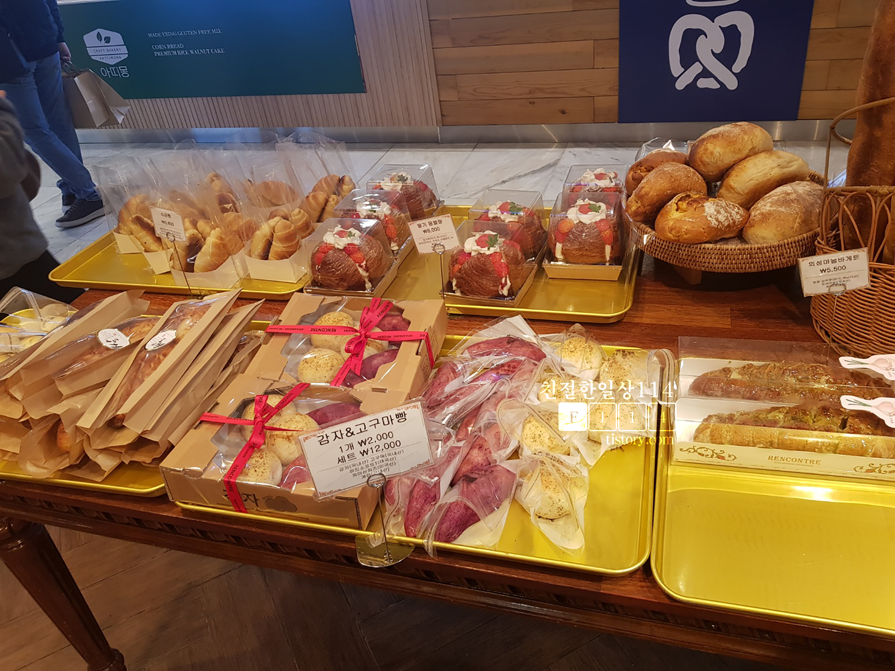 이날 랑콩뜨레에 들렸을때는 점심밥을 먹은 이후라서 구경하고 바게트만 사가려고 했었다. 구경을 하다보니 랑콩뜨레가 제과명인이 운영하는 가게라는 것을 알게 되었고 다른 빵들의 맛도 궁금해졌다.