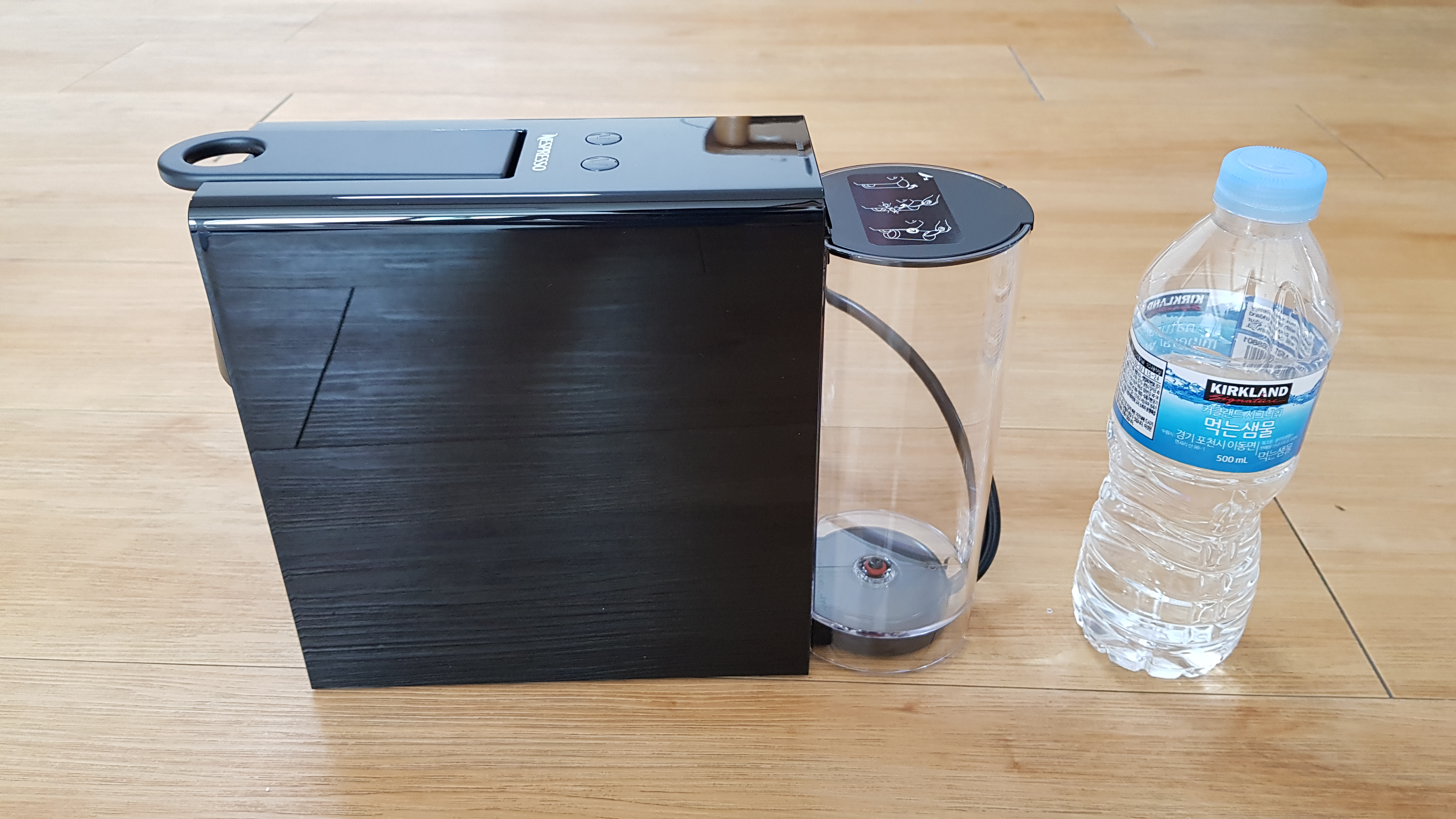 에센자 미니 c30 크기가 궁금하신 분들을 위해 500ml 생수병을 놓고 같이 찍어봤는데 생수병과 높이가 같다. 자로 재보니 높이 20cm 이다.