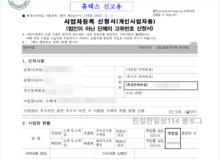 | 집에서 인터넷으로 (개인)사업자등록증 신청/발급하는 방법 (세무서 방문 없이 만드는 방법ㅣ10분이면 신청 okㅣ1일이면 발급 ok) (0) | 2022.08.11 |
