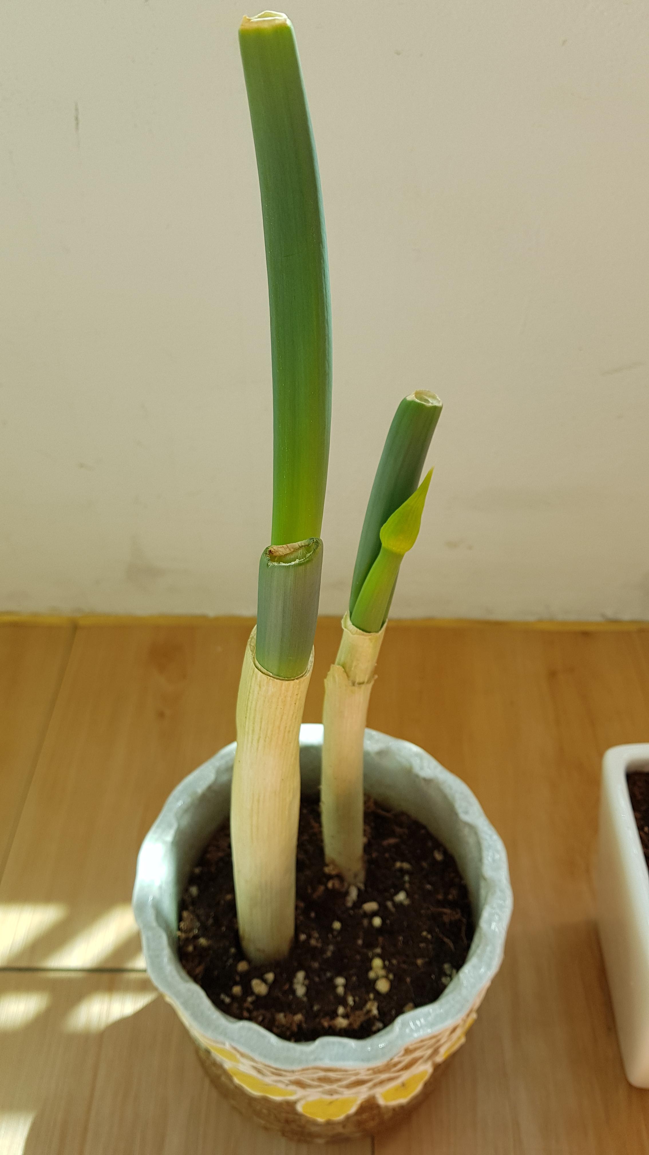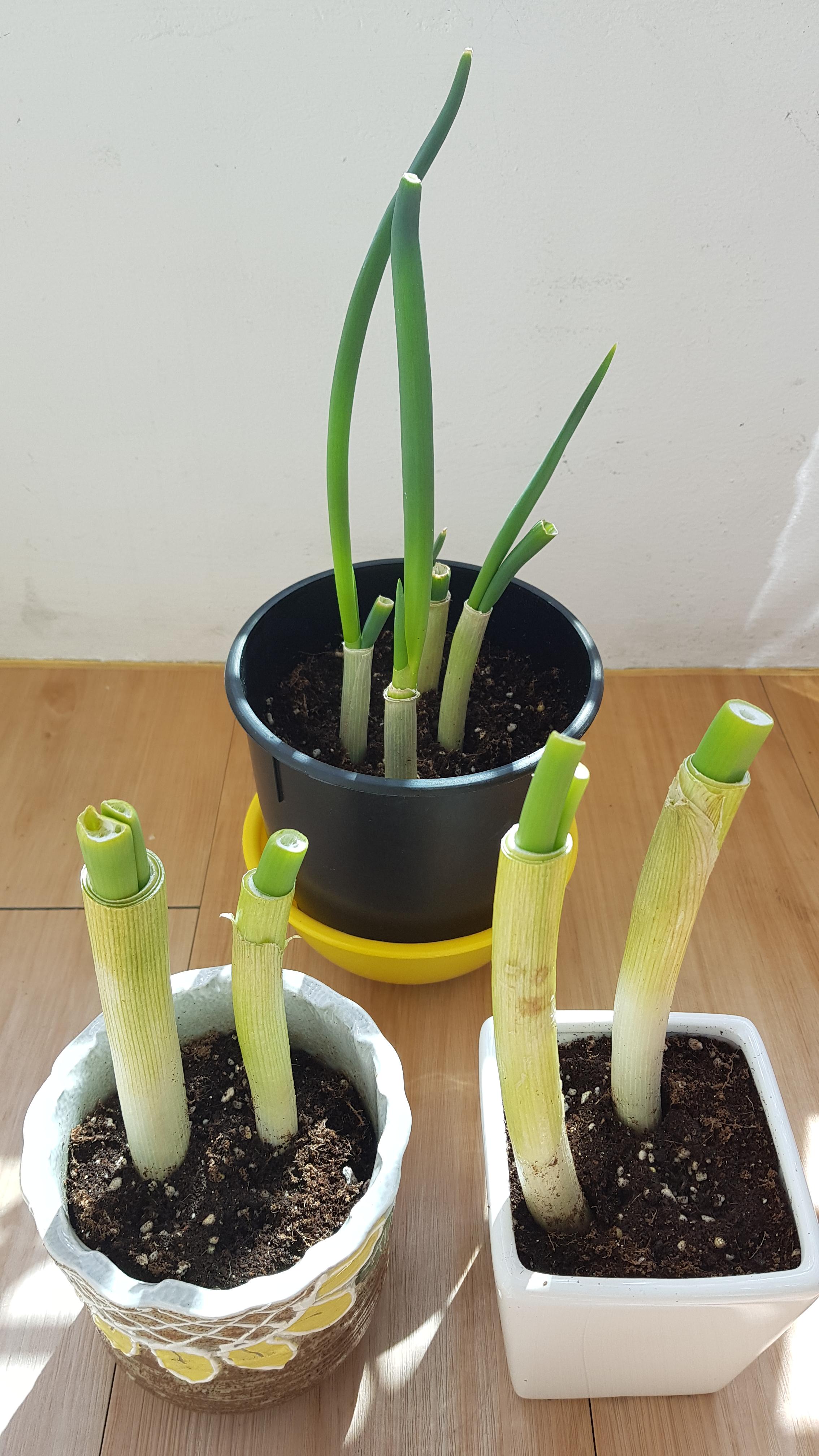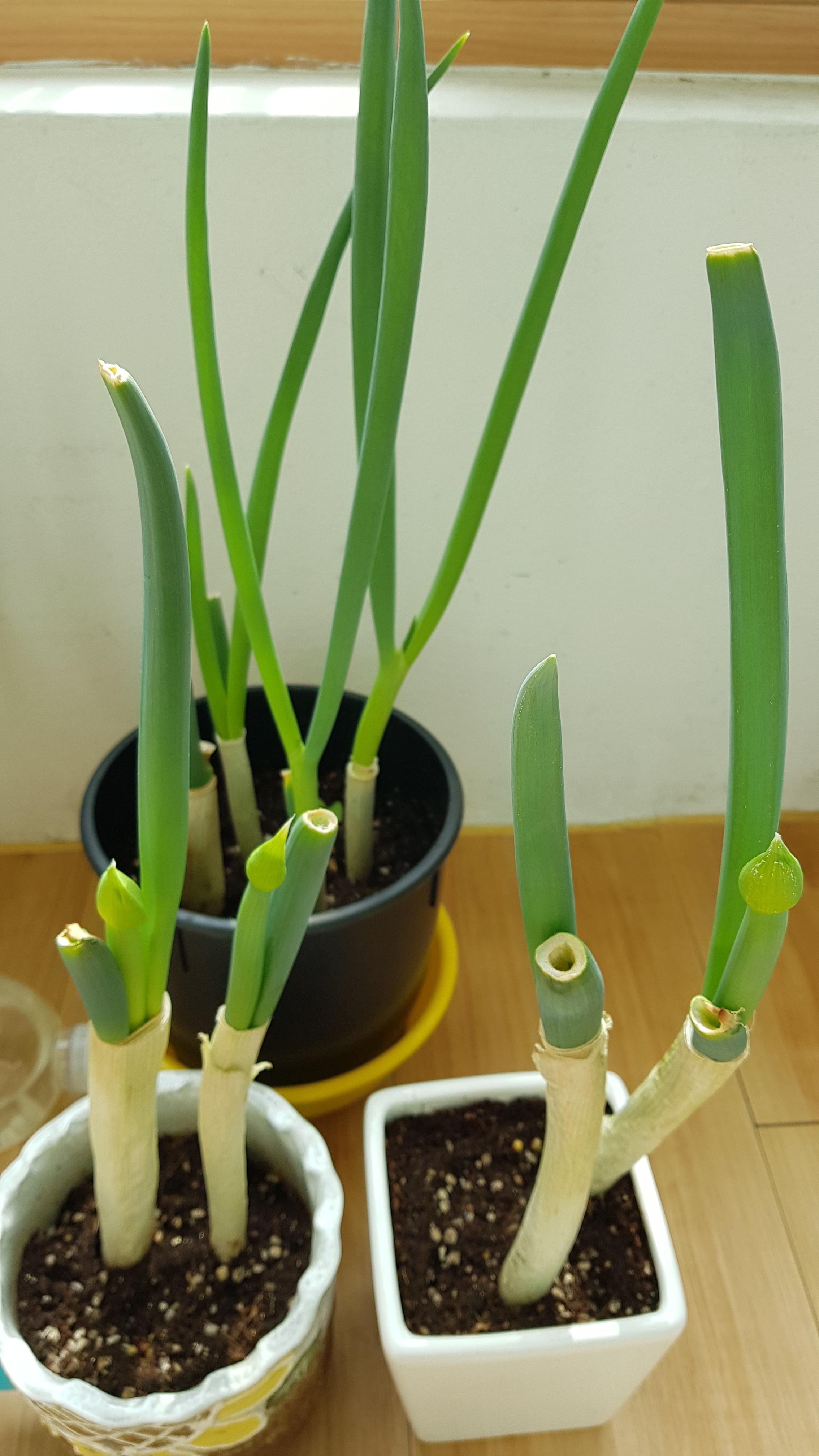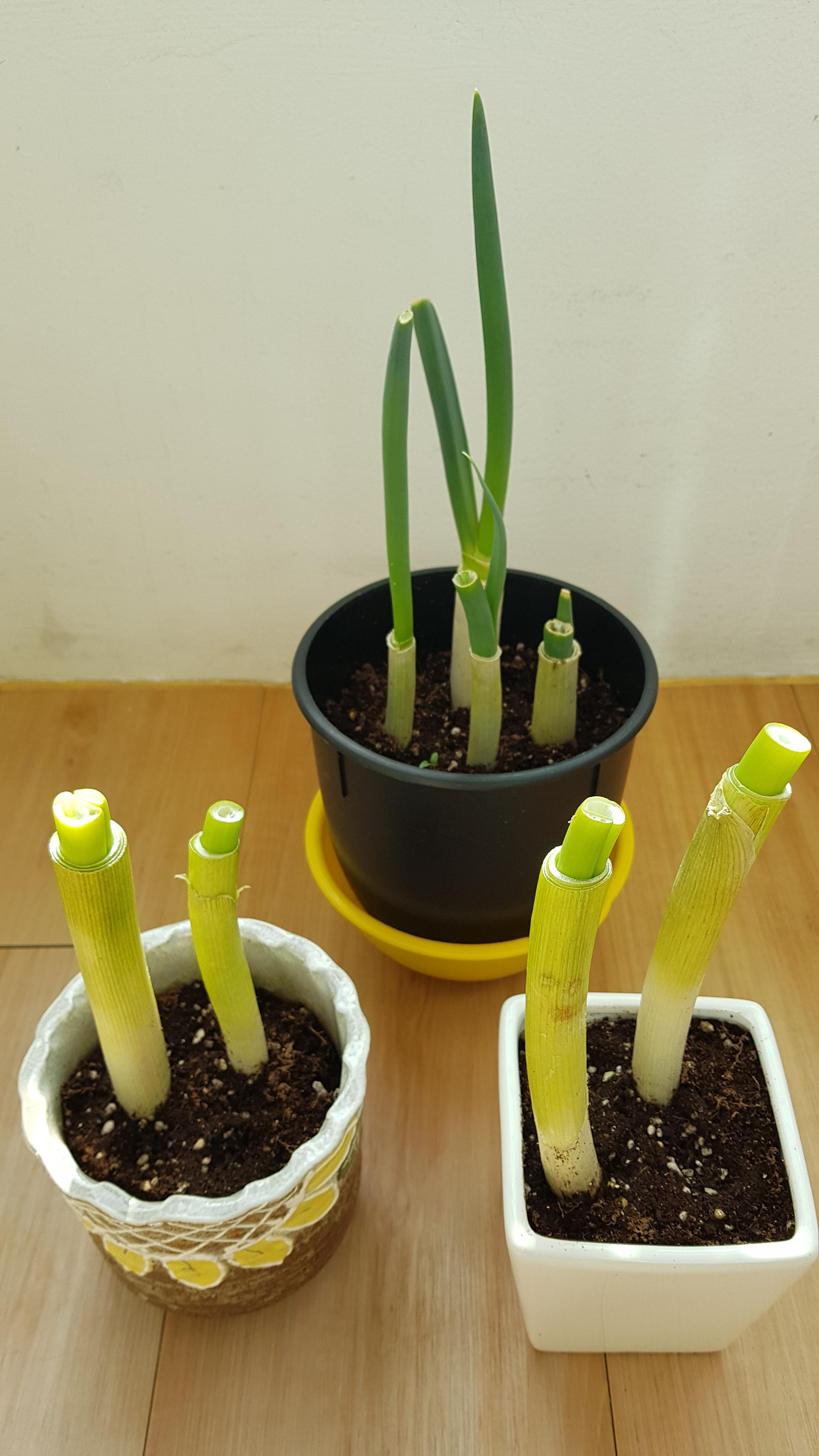 앞쪽에 화분에 있는 대파가 나중에 심은 파로 2일차에 접어들었고 뒤쪽 화분에 있는 대파는 먼저 심은 파로 10일차에 접어들었다.